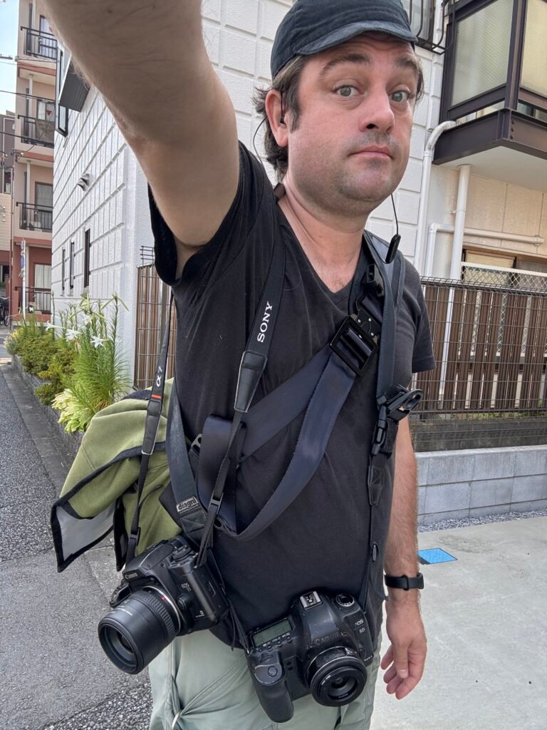Beyond that, look for the white guy who’s likely carrying a camera and wearing a backpack or large messenger bag. Brown hair, 170cm (5’7″), average build. In warmer weather, I’ll likely be wearing a plain black t-shirt, a plain black hat, and cargo shorts. Possibly a knee brace. If it’s cooler/cold, jeans and a hooded sweatshirt or jacket (all plain/no logos).
